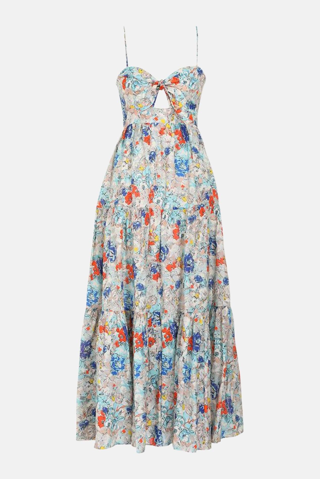 Zimmermann Clover Tie Front Midi Dress Topaz Peony Floral in White | Lyst zimmermann tie front dress