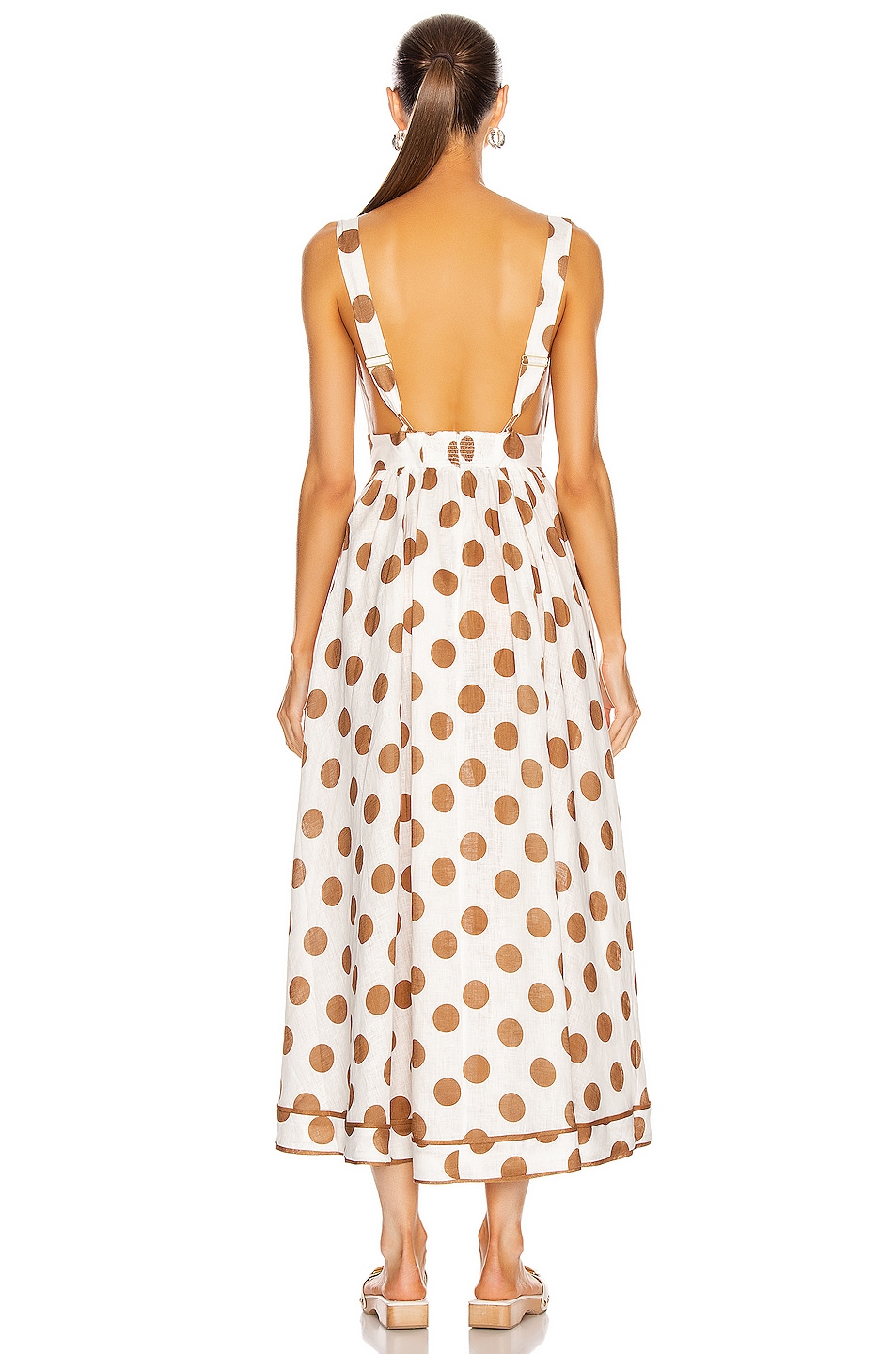 Zimmermann Empire Tie Front Long Dress in Tan Dot | FWRD zimmermann tie front dress