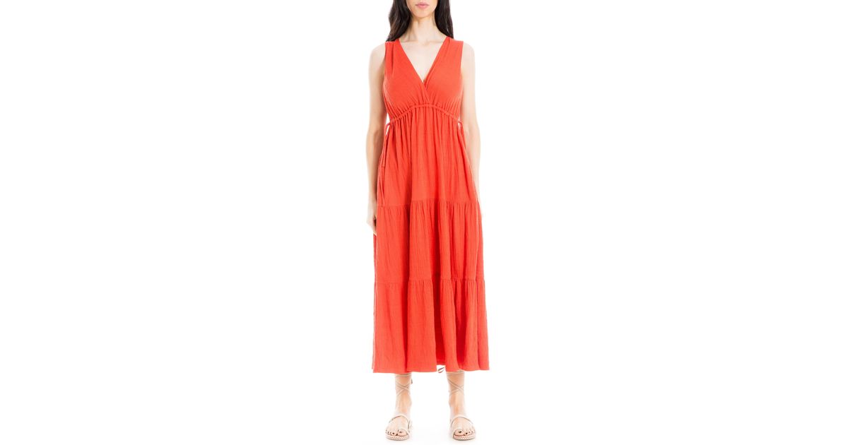 Max Studio V-neck Sleeveless Tiered Maxi Dress | Lyst max studio v neck waist tie dress