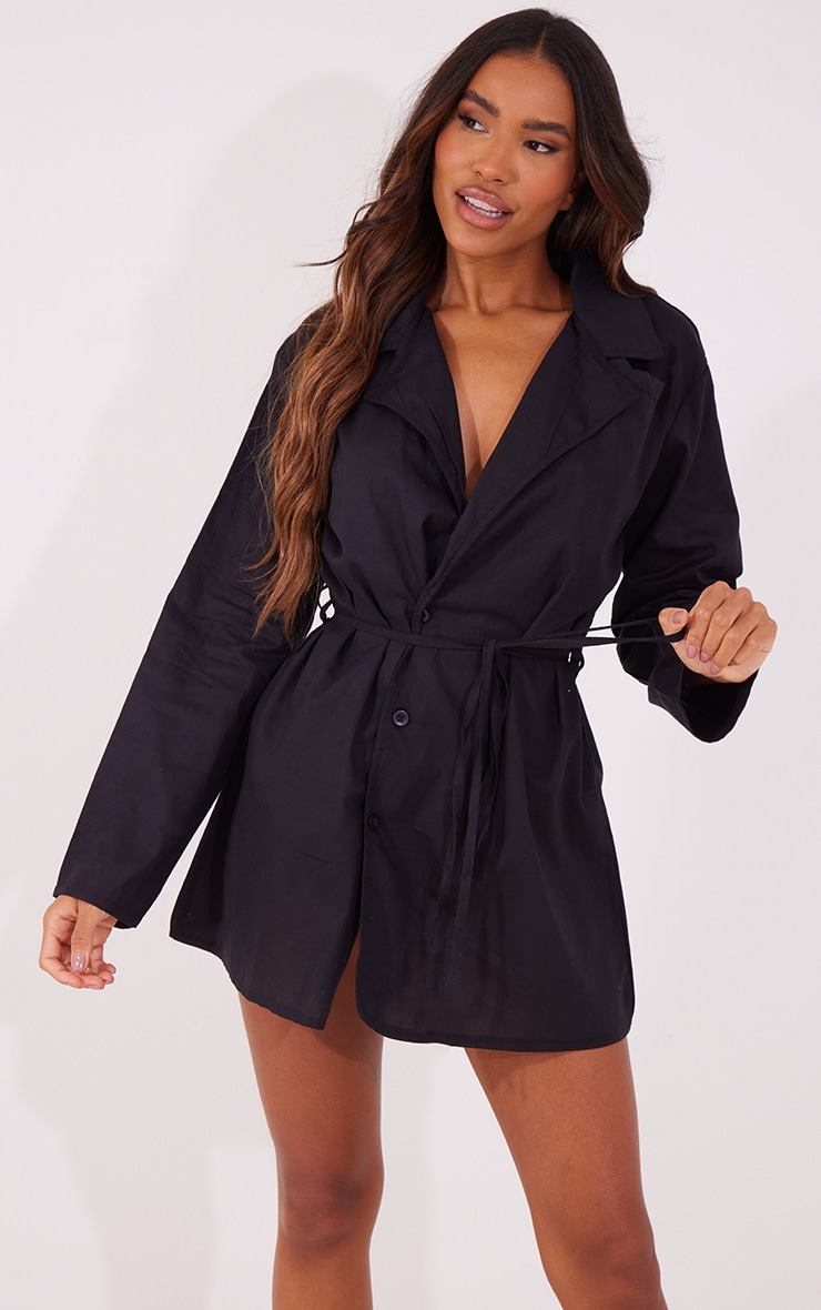 Black V Neck Pocket Detail Tie Waist Shirt Dress | Dresses | PrettyLittleThing sleeveless v neck tie waist shirt dress