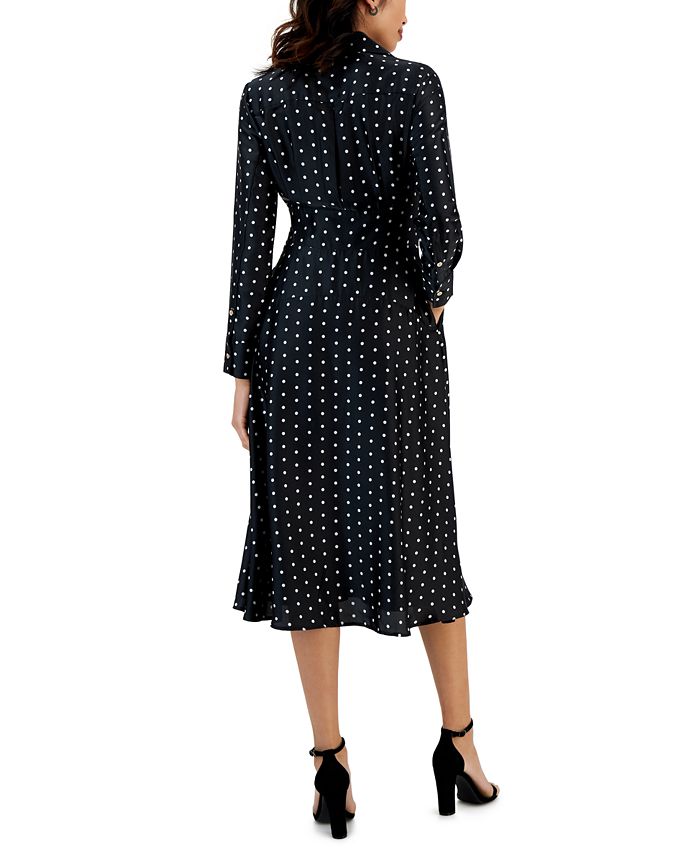 Tahari ASL Women's Polka-Dot V-Neck Tie-Waist Midi Dress - Macy's tahari asl tie neck midi dress