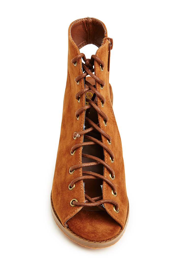 Lace Up Cut-Out Booties in Brown | DAILYLOOK how to wear cut out booties