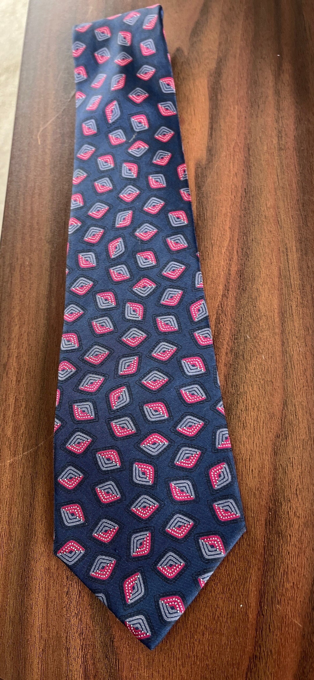 Vintage Mens Nino Cerruti Abstract Tie Handmade All 100% Silk Navy Red Squares Imported Fabric nino cerruti tie