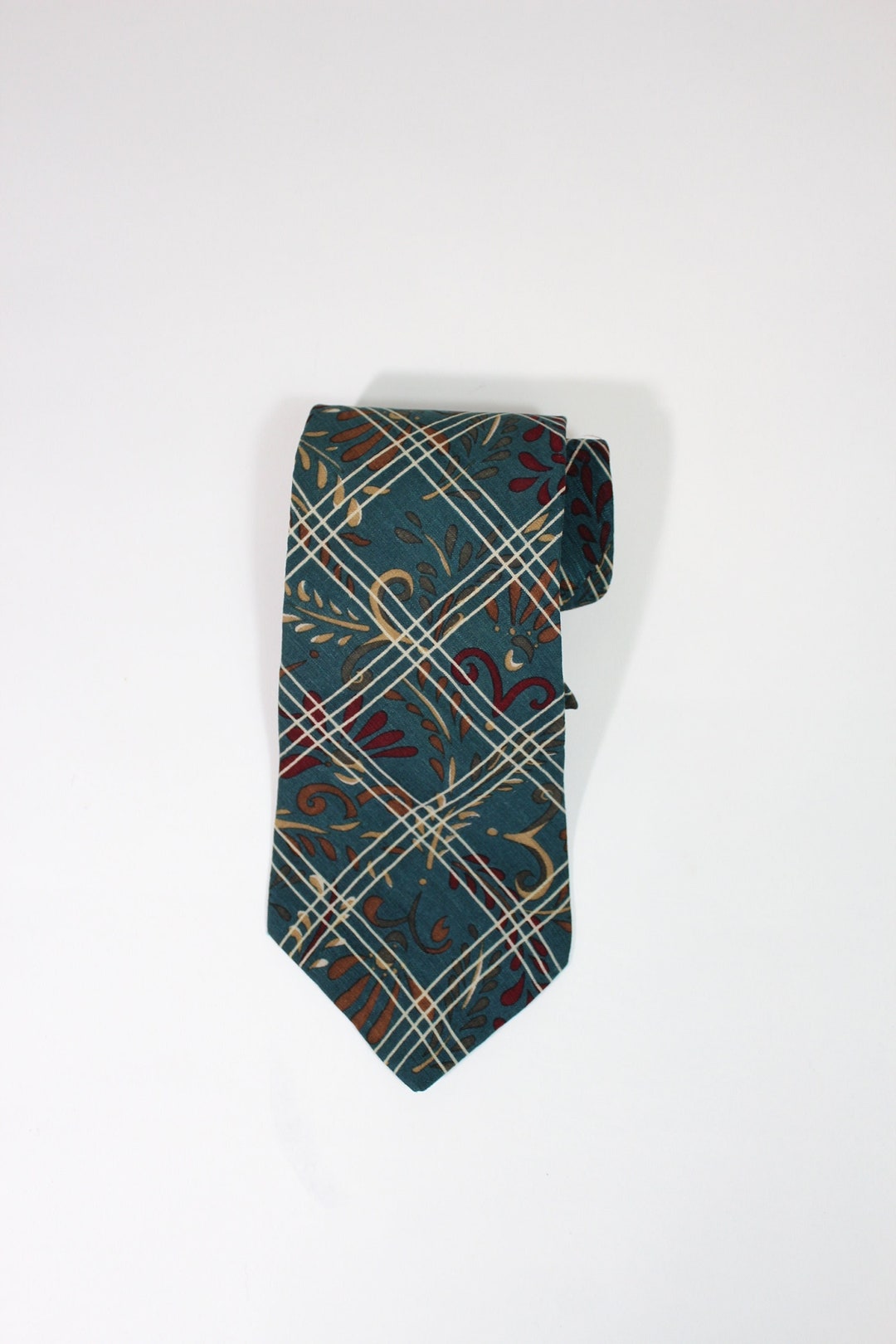 Nino Cerruti Vintage Green Tie With White Red Gold Brown Classic Pattern. Silk Dress Tie nino cerruti tie