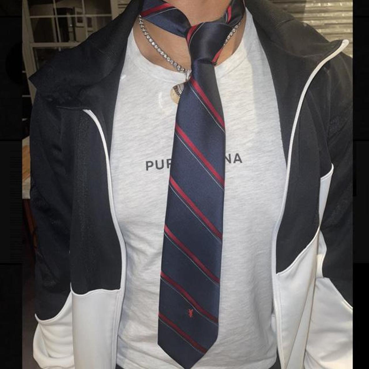 Yves Saint Laurent silk necktie. Colors include navy - Depop yves saint laurent necktie