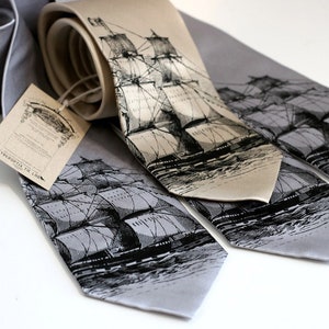 Clipper Ship Necktie. Men's Nautical Print Tie. Pirate, Schooner, Sailing Ship Print. Choose
