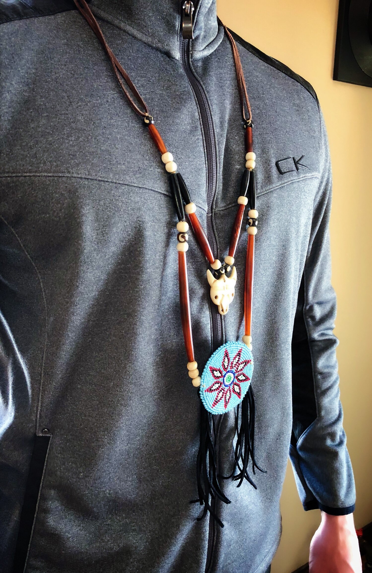 Beaded Medallion Necklace - Buffalo - Tatanka - Sage Blessed - Native American - Buffalo Bone bolo ties men