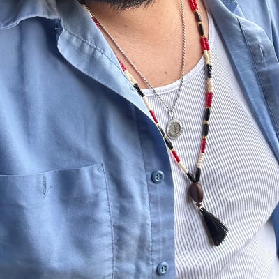 Statement Necklace, Colorful Oval Jasper Pendant, Brown Leather Cord, Wire Wrap Bead Pendant Lot - (3) Southwestern Style Silver Plate Bolo TiesBlank Bolo Tie Parts Kit Round Slide Textured Tips Black Cord DIY Silver Tone Supplies for 4 Mens Boho Layering Feather Pendant Necklace Set- Wood and Jade Gemstone Bead Minimal Dainty paparazzi | Accessories | Paparazzi Urban Necklace That Quill Be The Day Multicolored Feather 60 Cool and Unique Necklaces For Guys- Awesome Stuff 365Men Necklace Men Stainless Steel Necklace Men Jewelry - EtsyKingman Turquoise Bolo Tie Western Bolo Tie Arrowhead Bolo | EtsyEthnic Straps for Sunglasses | Sunglasses strap, Eyeglasses holder necklace, Glasses strapTurquoise Bolo Tie for Men - EtsyMen's Necklace Men's Feather Necklace Men's | Etsy Leather Bracelet, Gold Chains For MenBuddha Stones Ethnic Wolf Tooth Pattern Beads Wealth Necklace Pendant â buddhastoneshopSouthwestern Black Stone Bolo Tie Gifts for Him Cabochon Indian Leather Cowboy Necktie Blue Bolo Tie Necklace Western Men Women Youth Gift Customize - Etsydancingbluestone - EtsyPersonalized Mens Necklace / Handmade White Scarf / Burning Men Style / Personalized Gift Statement Bracelet, Handwoven Bracelet, Contemporary Jewelry, Unique Handcrafted Jewelry