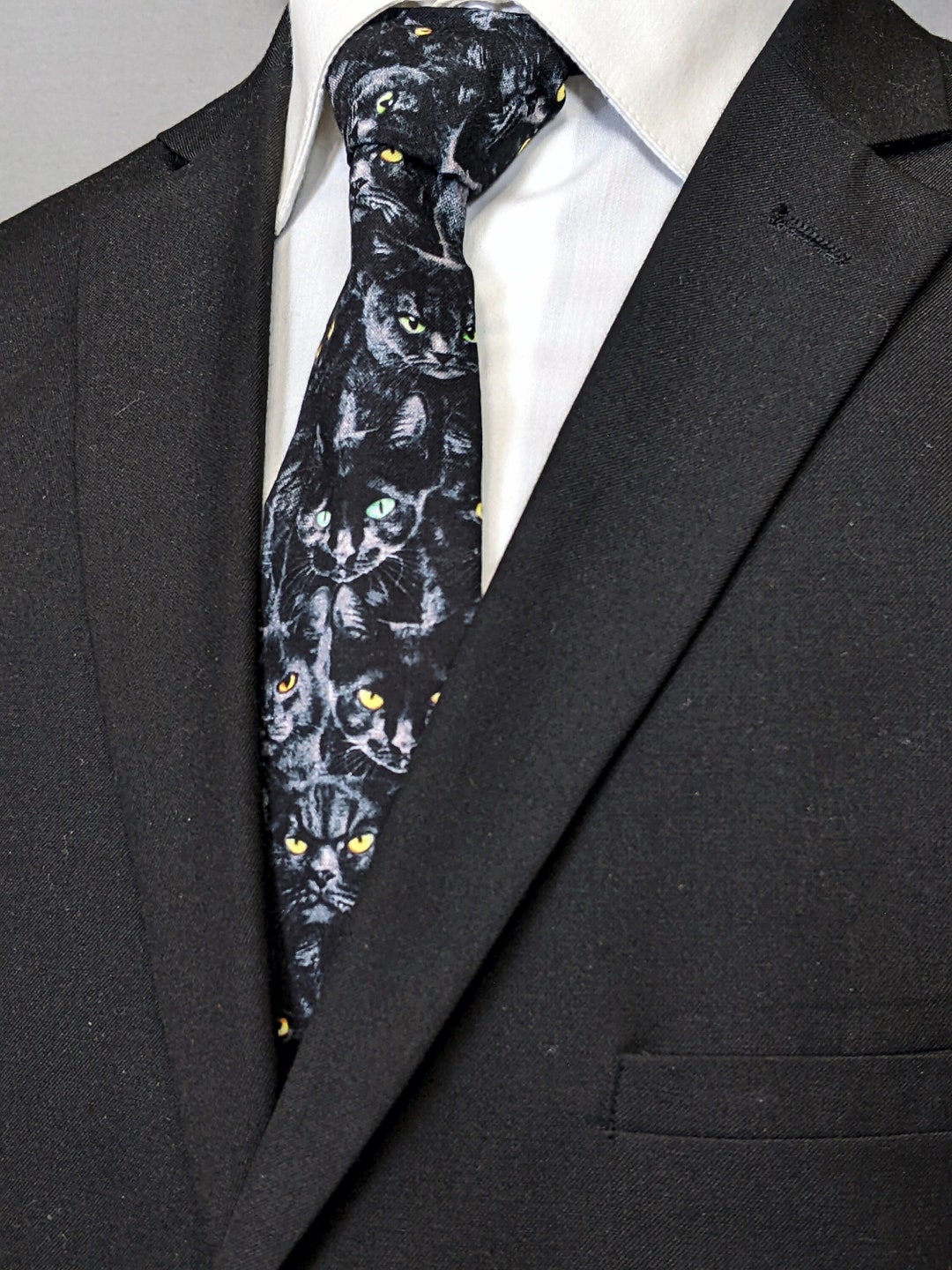 Neckties With Cats â Allover Black Cat Tie With Multicolored Eyes - Etsy neckties for cats