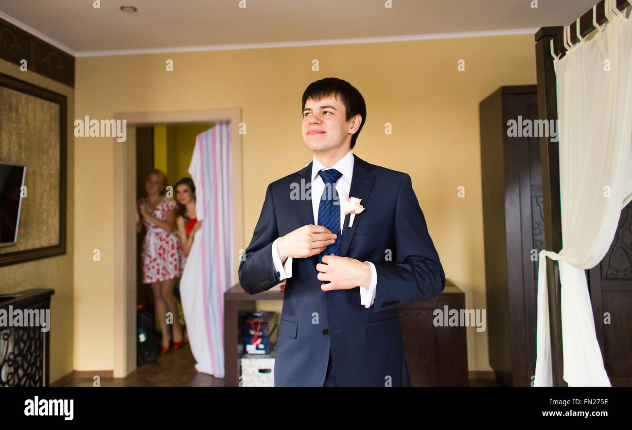 Groom putting on a necktie Stock Photo - Alamy groom necktie