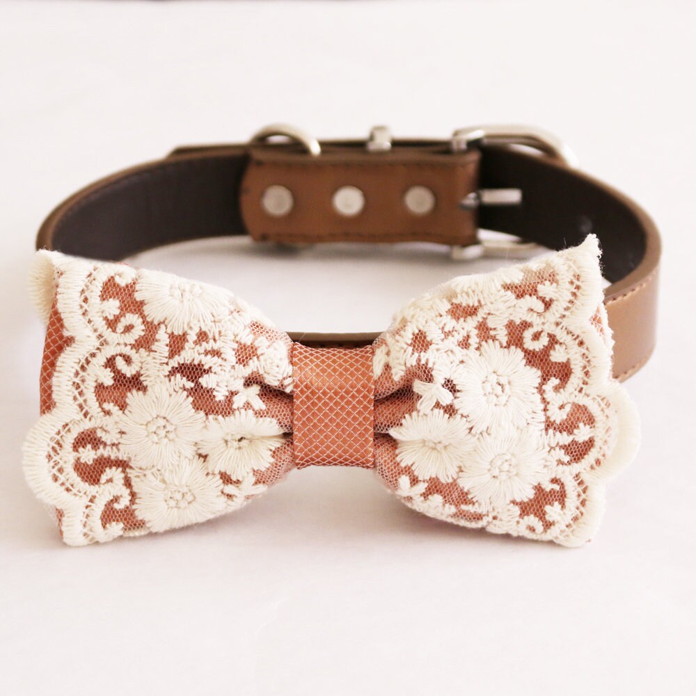 Copper lace bow tie dog collar girl collar M to XXL Collar | Etsy chinese collar with bow tie