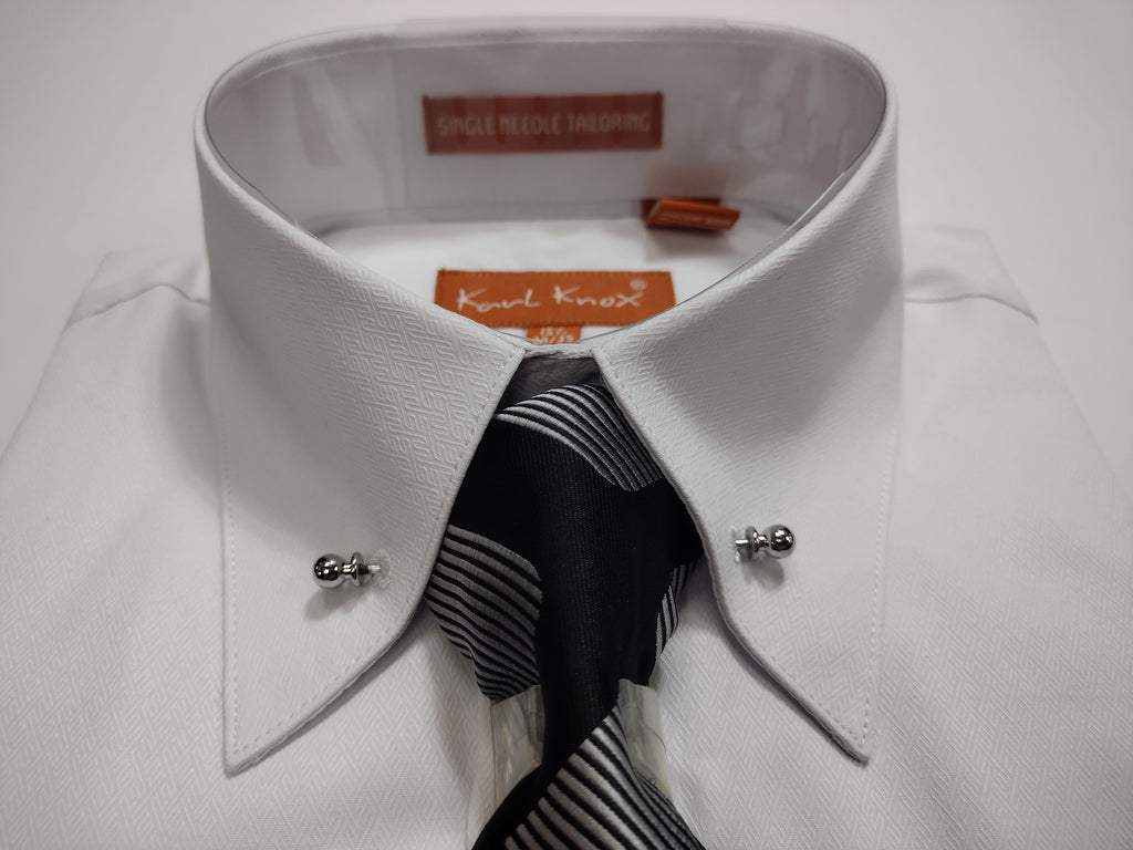 Mens White Elegant Collar Bar French Cuff Dress Shirt + Tie Karl Knox | Nader Fashion Las Vegas men's shirt with tie bar collar