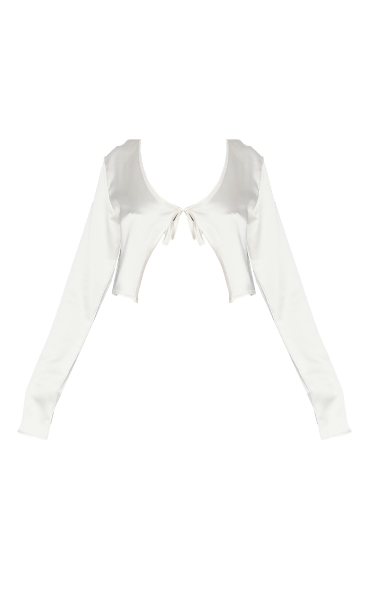 Cream Satin Tie Front Long Sleeve Shirt | PrettyLittleThing