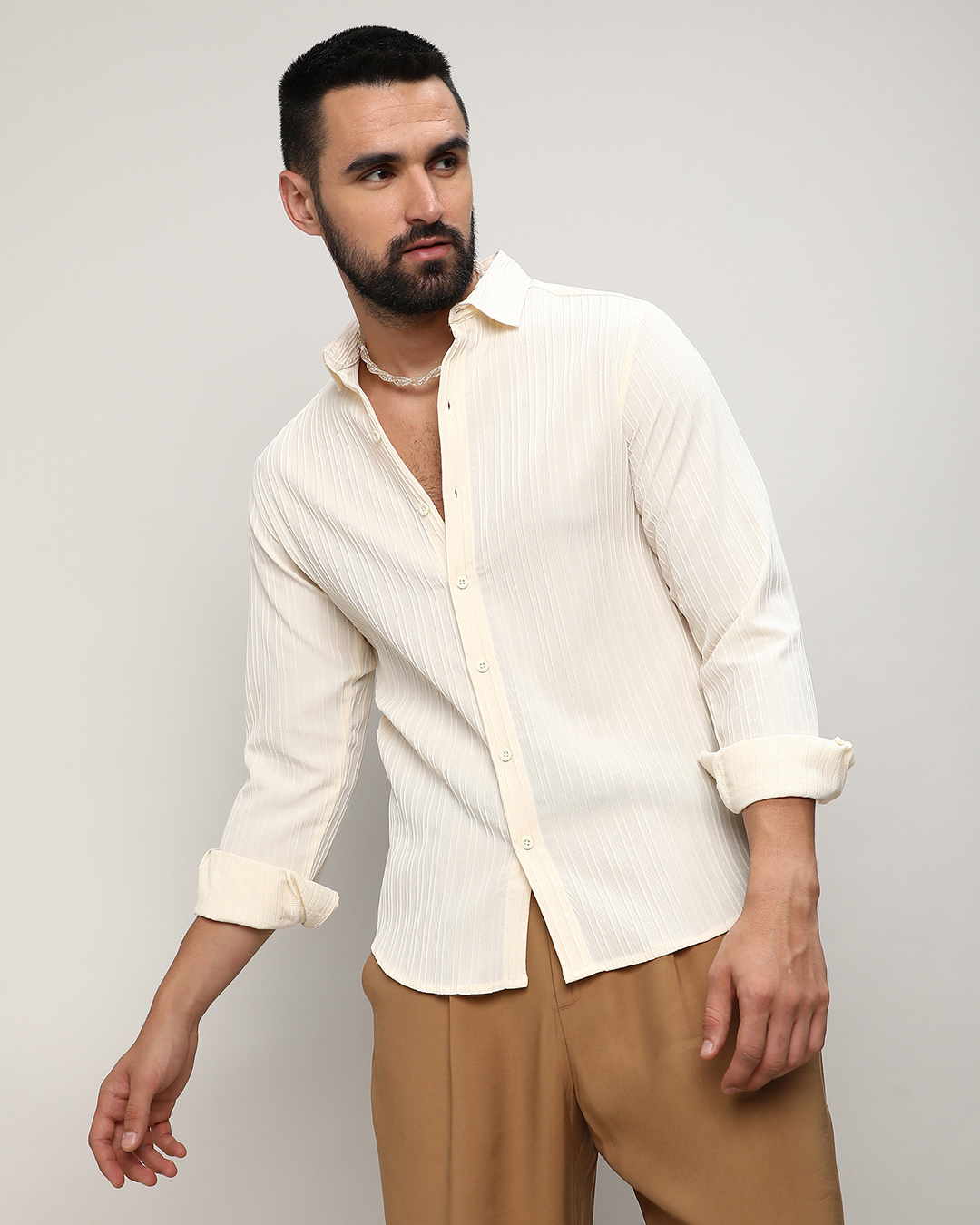Buy Men's Wefted Cream Shirt Online | SNITCH
