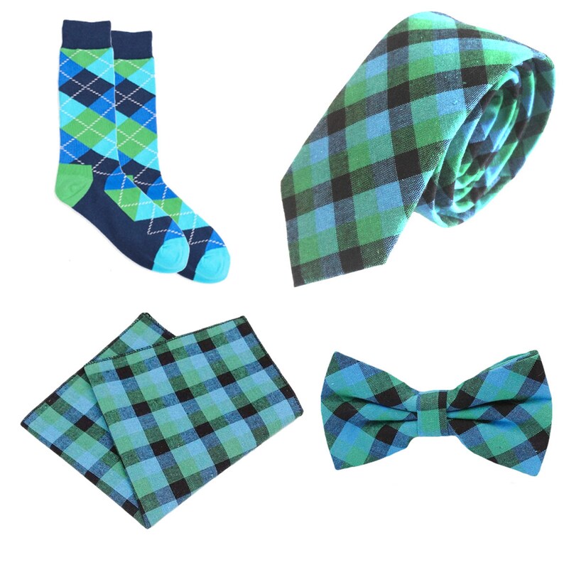 Matching Mens Socks Tie Bowtie & Pocket Square Plaid Green Blue - Etsy mens matching socks and ties