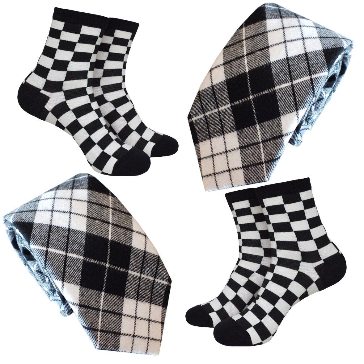 Matching Mens Socks & Tie black and White check Plaid mens matching socks and ties