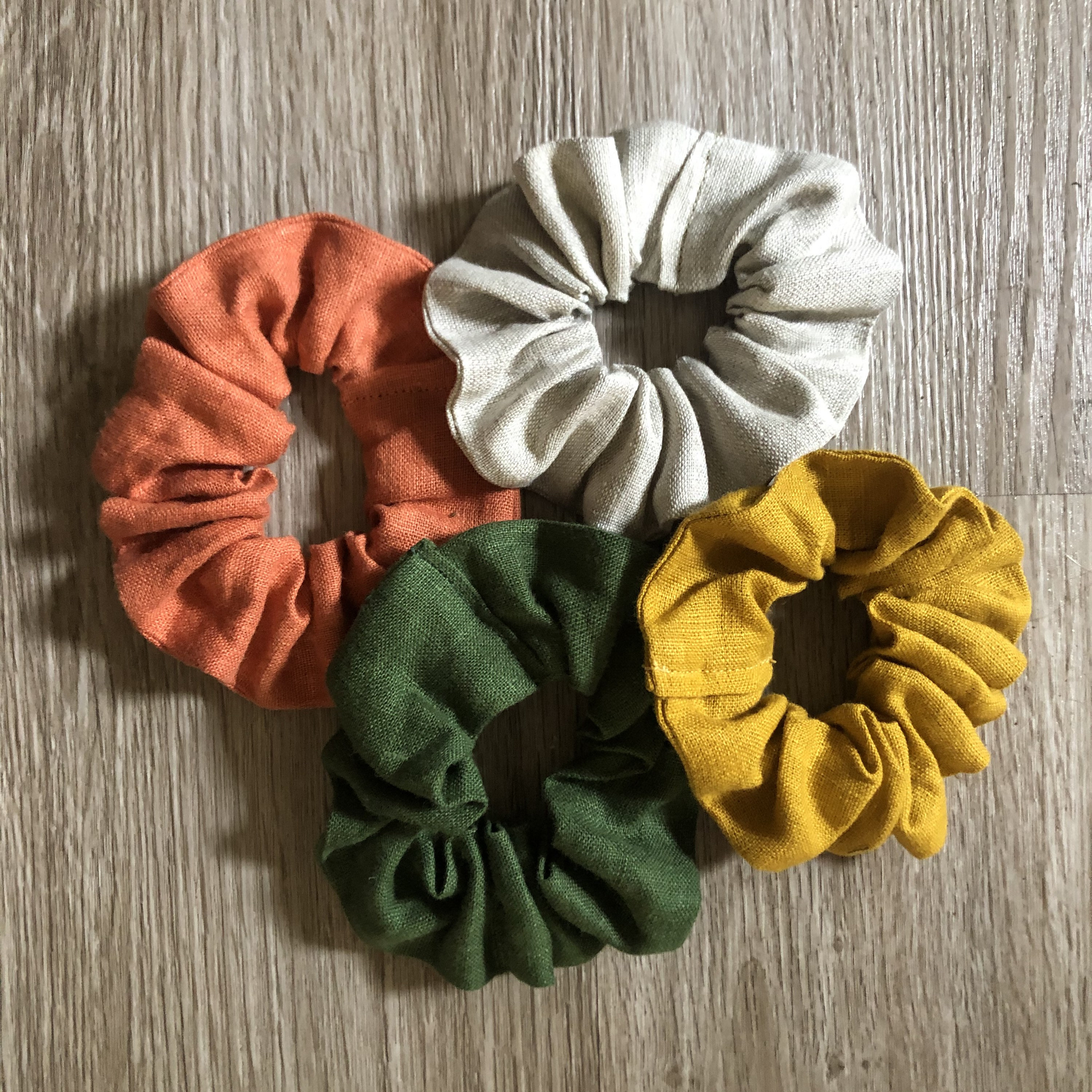 Linen Scrunchie Set Set of 4 100% Linen Scrunchies in Beige | Etsy scrunchie ribbon hair tie