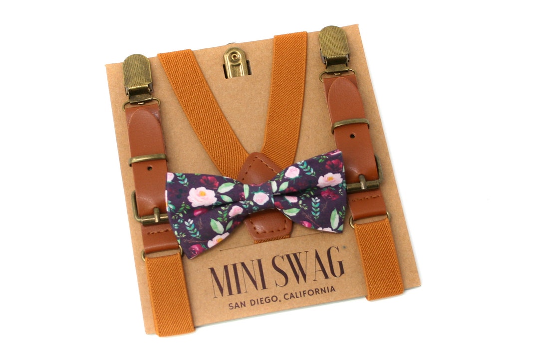 Marsala Floral Bow Tie & Leather Suspenders PERFECT for - Etsy