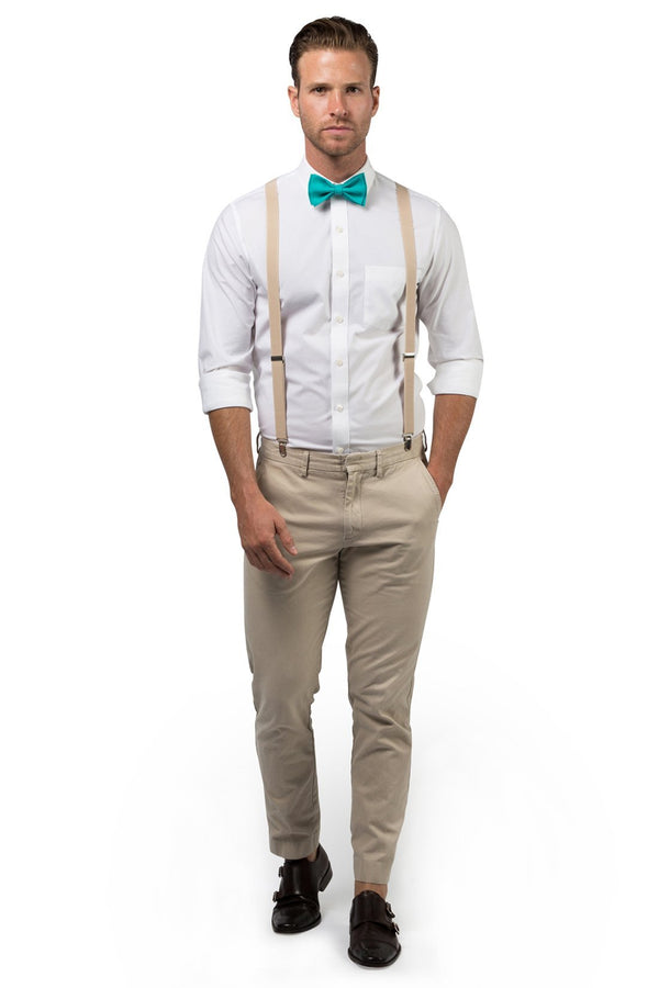 Beige Suspenders & Jade Bow Tie - Baby to Adult Sizesâ Armoniia