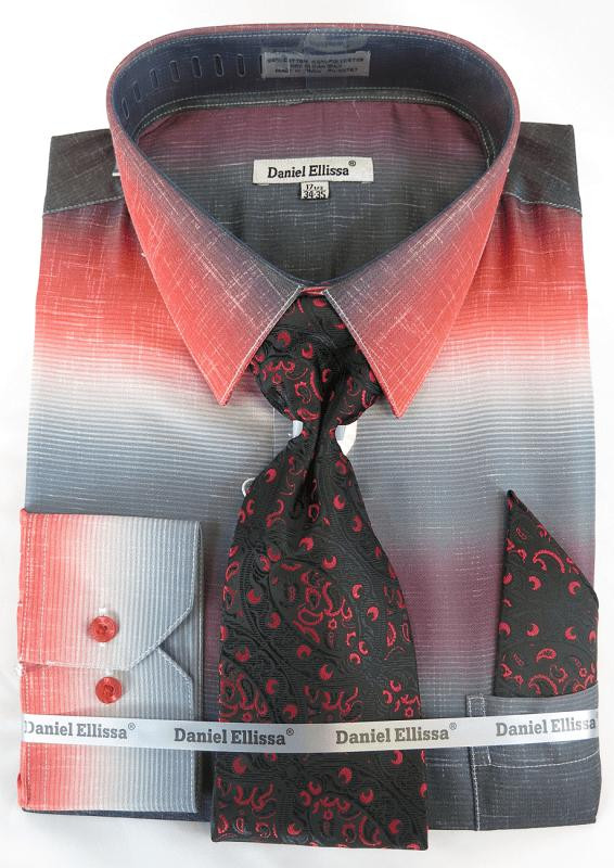 Big Men Dress Shirts with Ties Edgy Black Color Blend DE DS3795 mens black tie dress shirts