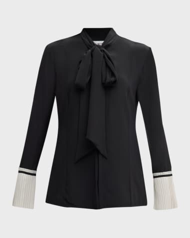 VICTORIA BECKHAM Tie-detailed lace-trimmed cotton-blend blouse | NET-A-PORTER beckham black tie