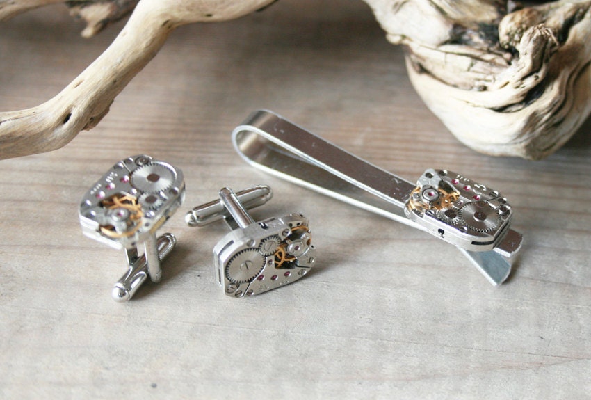 Tie Clip and Cufflinks Set of Mens Accessories as Anniversary | Etsy mens tie clip and cufflinks