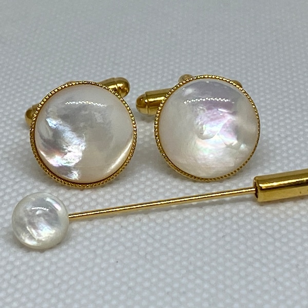 Mother of Pearl Cufflinks round Gold Plated OR Silver | Etsy mother of pearl cufflinks and tie pin