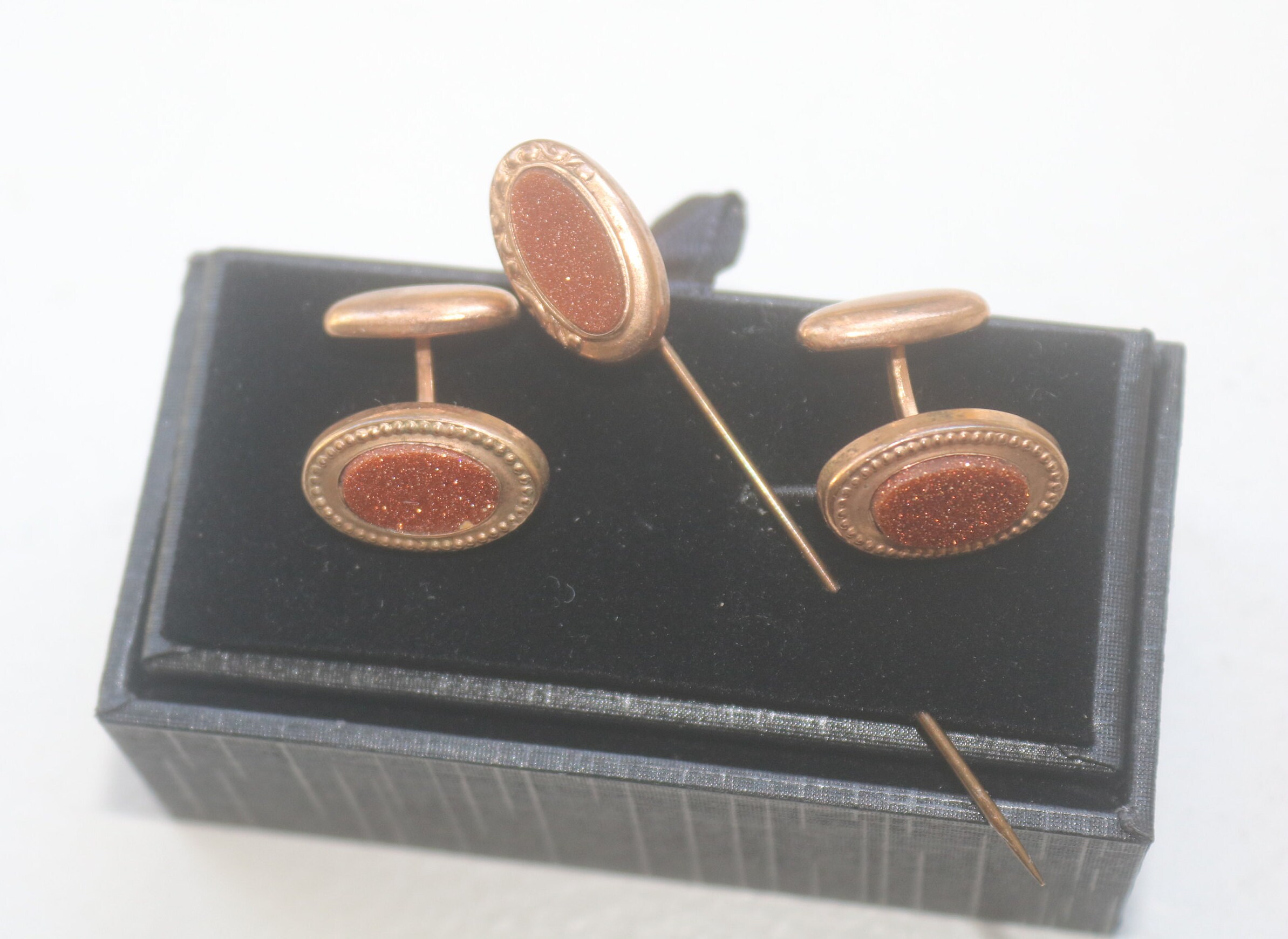 Antique 9K Gold Cuff Links Tie Pin Cuff Links Lapel Pin Set | Etsy cuff links and tie pin