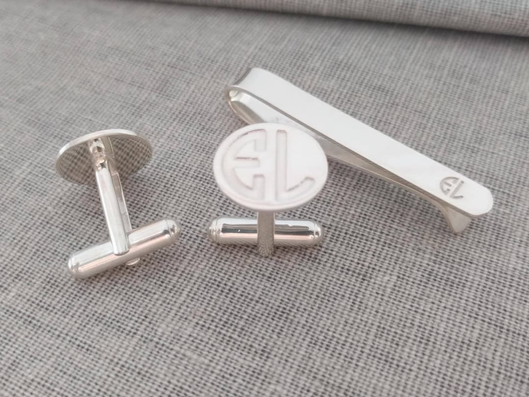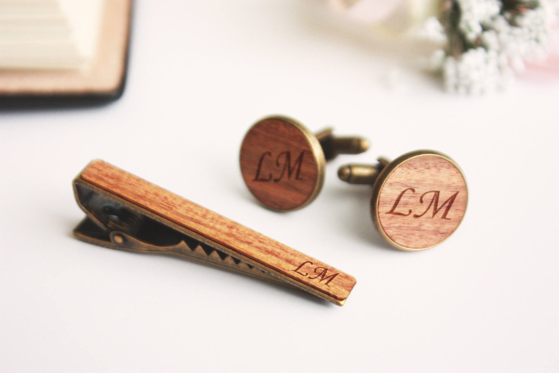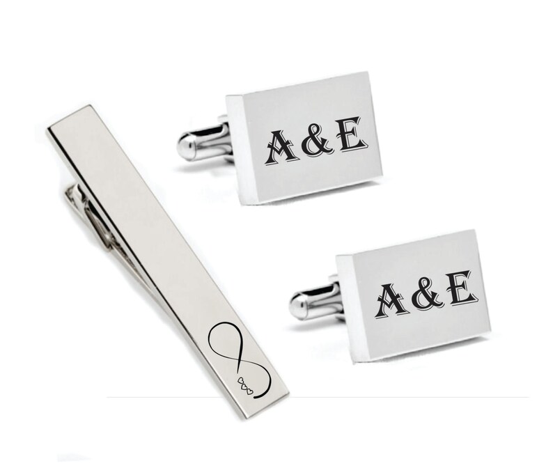 Tie Clip and Cuff Links Cufflinks for Groom personalized | Etsy monogrammed cufflinks and tie clip