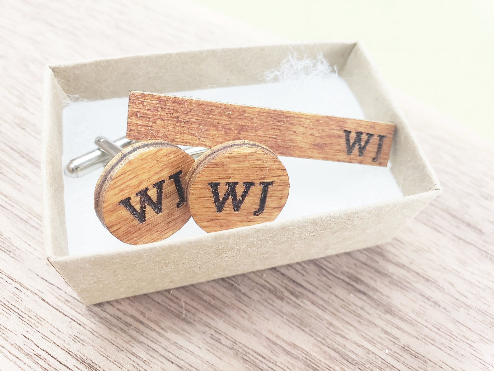 personalized cufflink and tie clip set