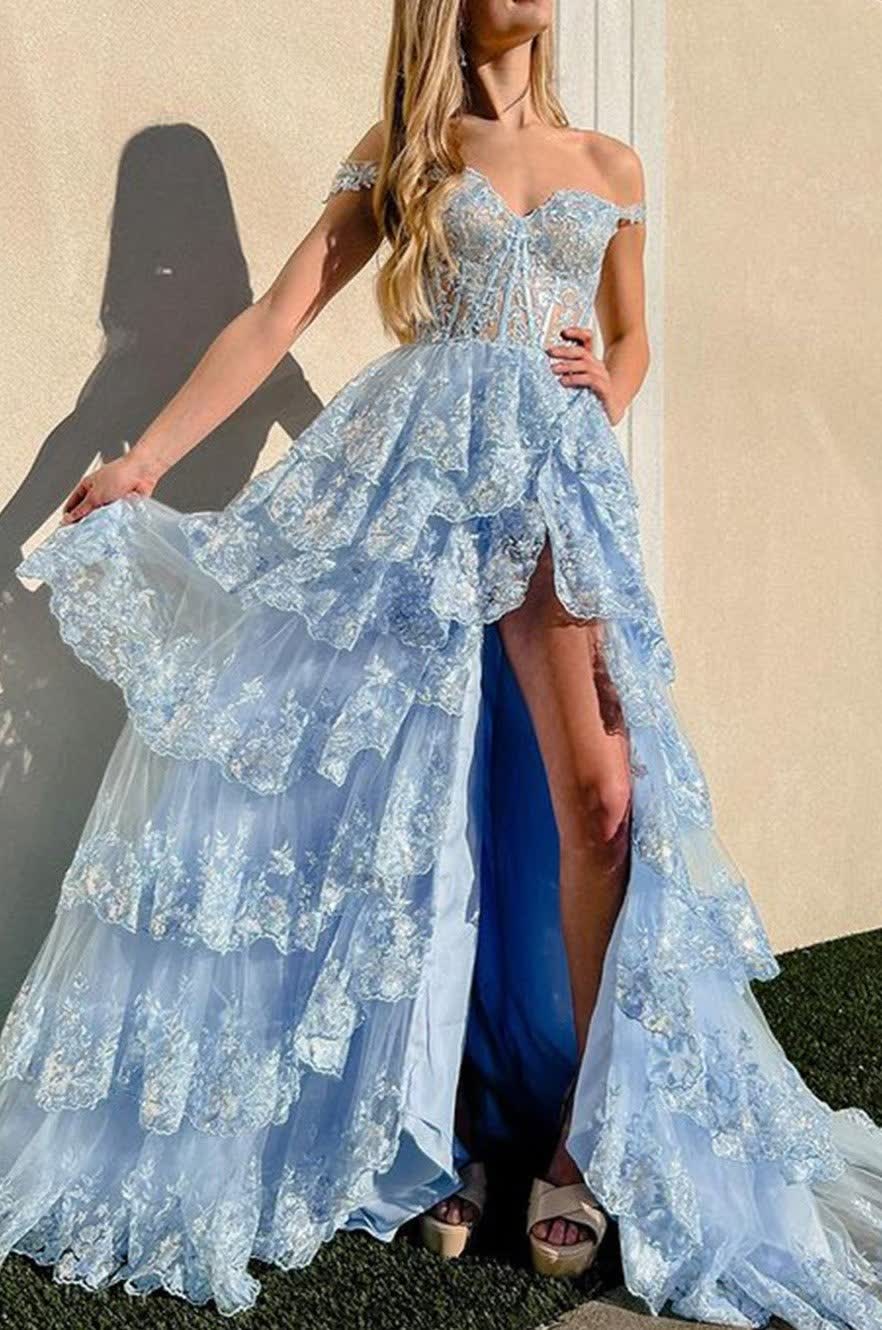 Black Off The Shoulder Tiered Prom Dress â Denver Dress off the shoulder black tie dress