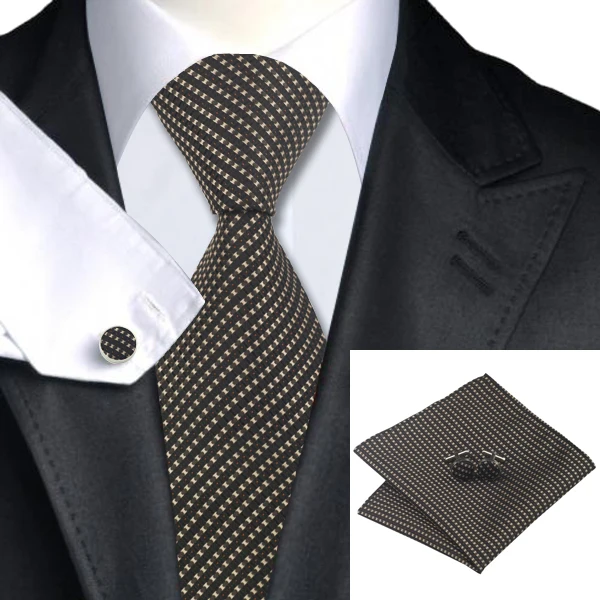 Hot Mens Tie Brown Stripe Silk Jacquard Neck Ties Hanky Cufflinks Set Business Wedding Party mens ties brown