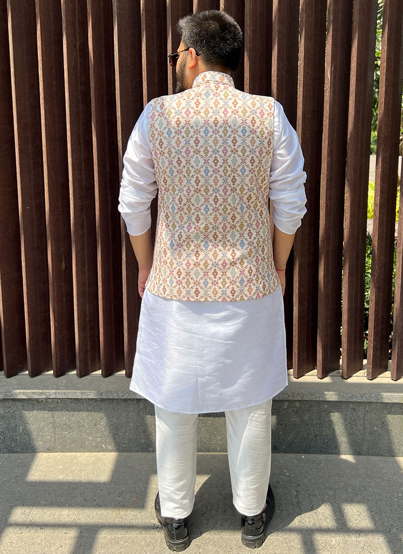 nehru jacket with tie Gold White Black Red Blue Beige Grey Price Rose Orange Purple Green Yellow Cyan Bordeaux pink Indigo Brown Silver