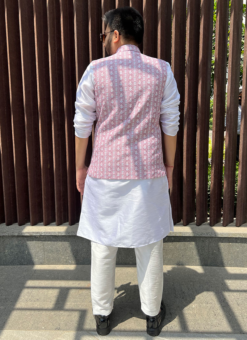 Wedding Wear Thread Embroidered Nehru Jacket Set nehru jacket with tie