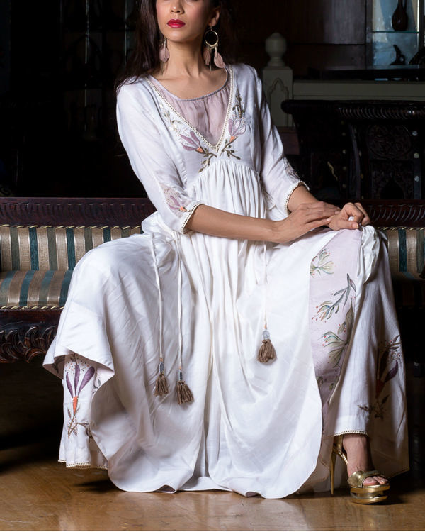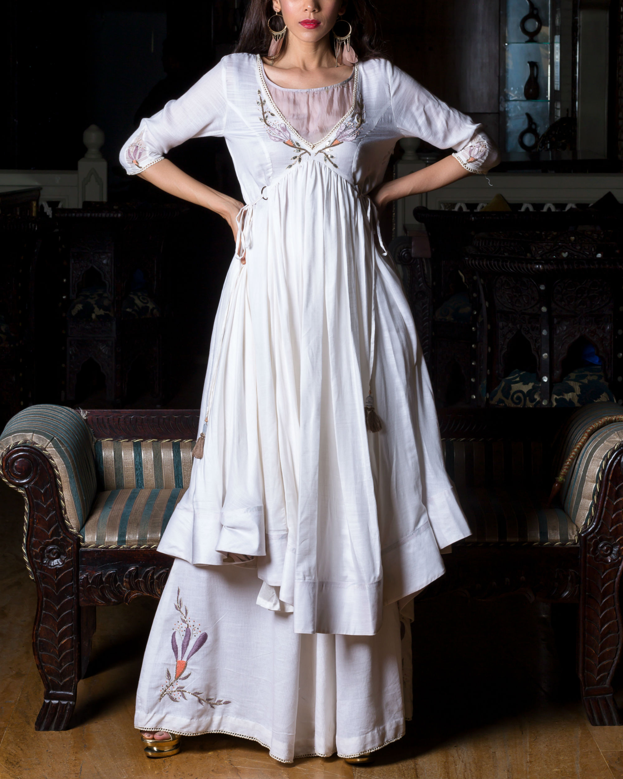 Offwhite side tie-up kurta with palazzos by Aaryaa by Kashveen Kohli | The Secret Label kurti with side tie up