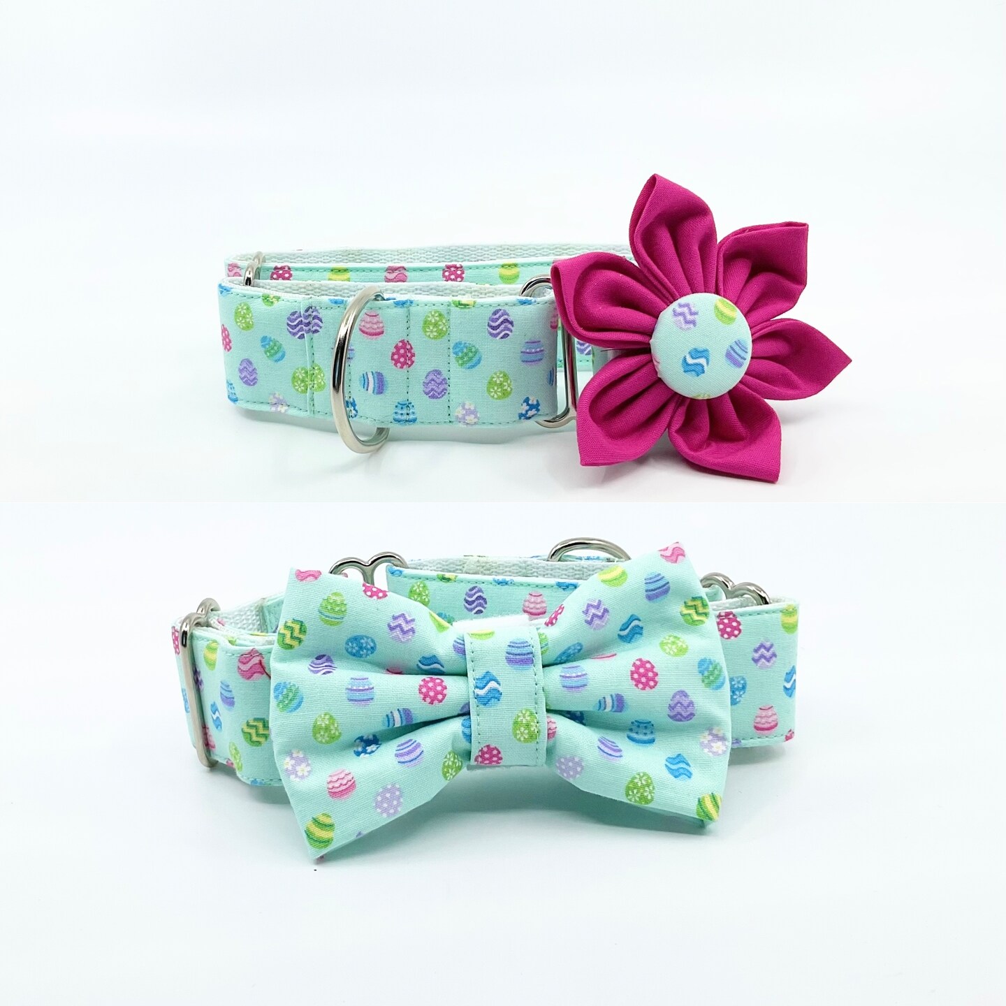 Easter Martingale Dog Collar With Optional Flower Or Bow Tie Colorful Easter Eggs On Mint Green easter dog bow tie collar