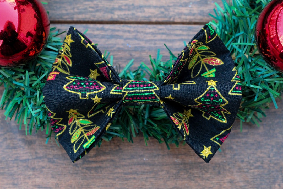 Sparkly Christmas Tree Dog Bow Tie Gold and Black Dog Bow Tie Christmas Dog Bow Holiday Dog Bow sparkly dog bow tie