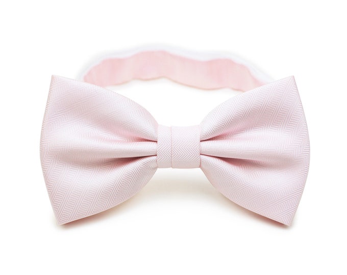 Matte Blush Bow Tie Groom Wedding Bowtie in Blush Pink Herringbone Finish, Pre-tied, Adjustable blush and bowtie weddings