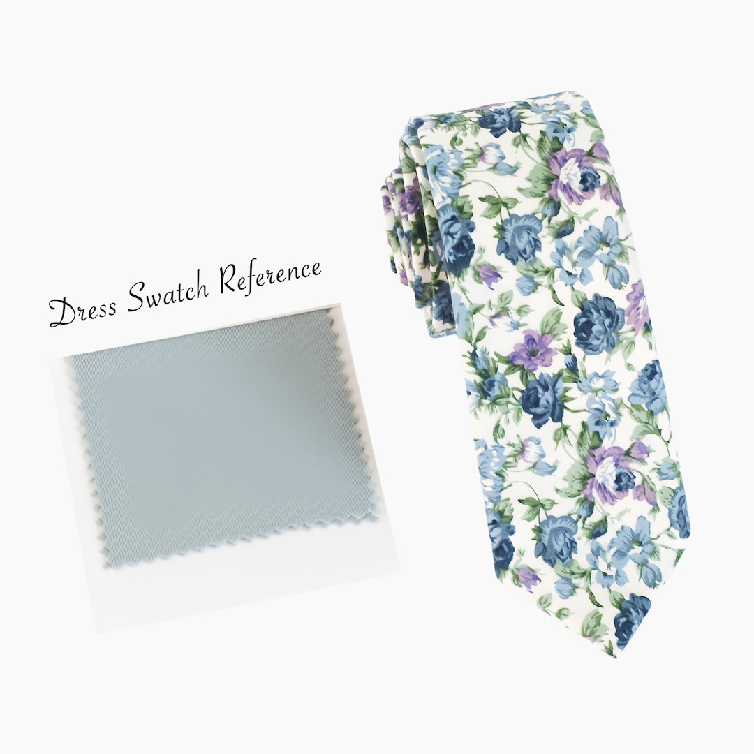 Dusty Blue Floral Ties Collection - Elegant Wedding Ties in Skinny, Classic & Long Styles With dusty blue floral ties
