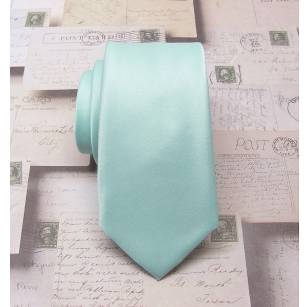 Seafoam Green Necktie. Solid Color Satin Finish Tie, No Print