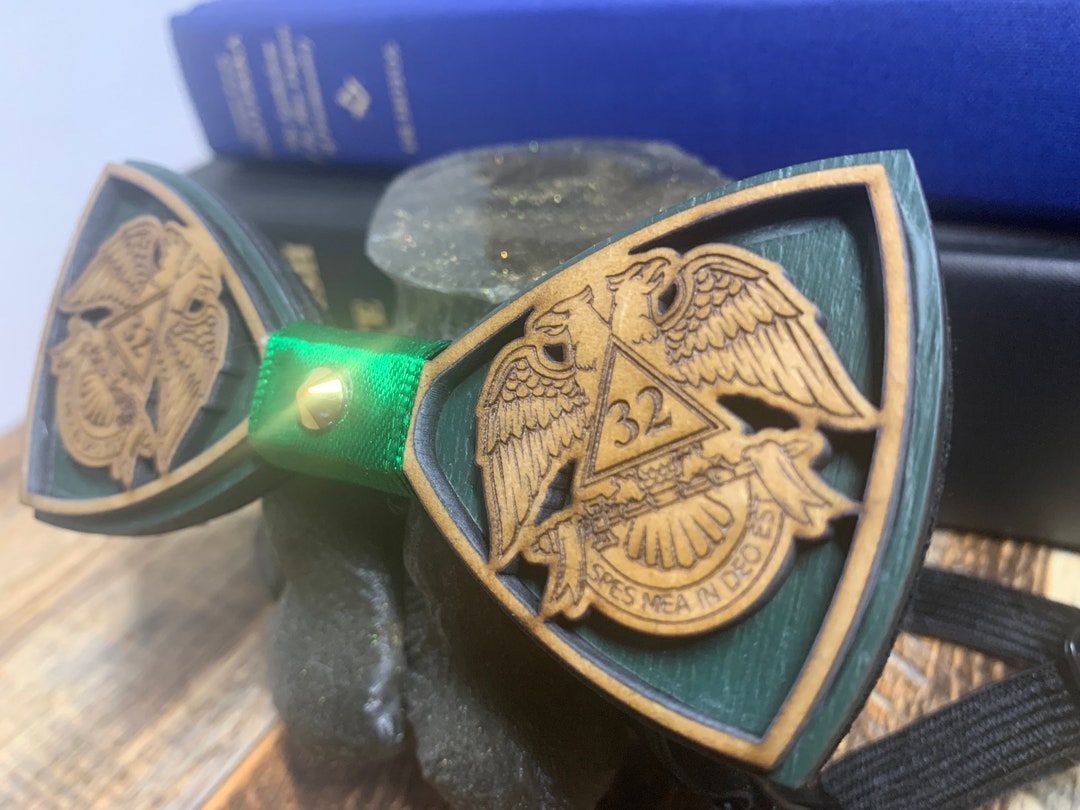 Masonic Wooden Bow Tie Scottish Rite AASR Design Adjustable Strap, Custom Colors Luxury Masonic