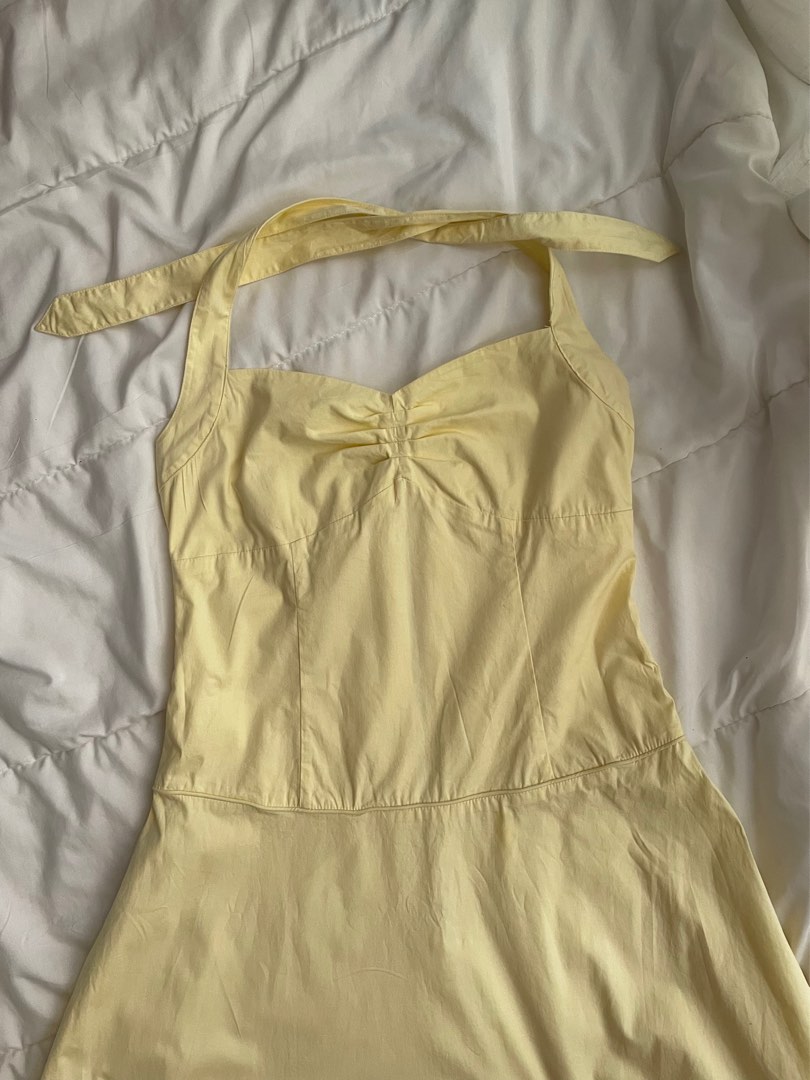 Pastel yellow tie dress, Women's Fashion, Dresses & Sets, Dresses on Carousell