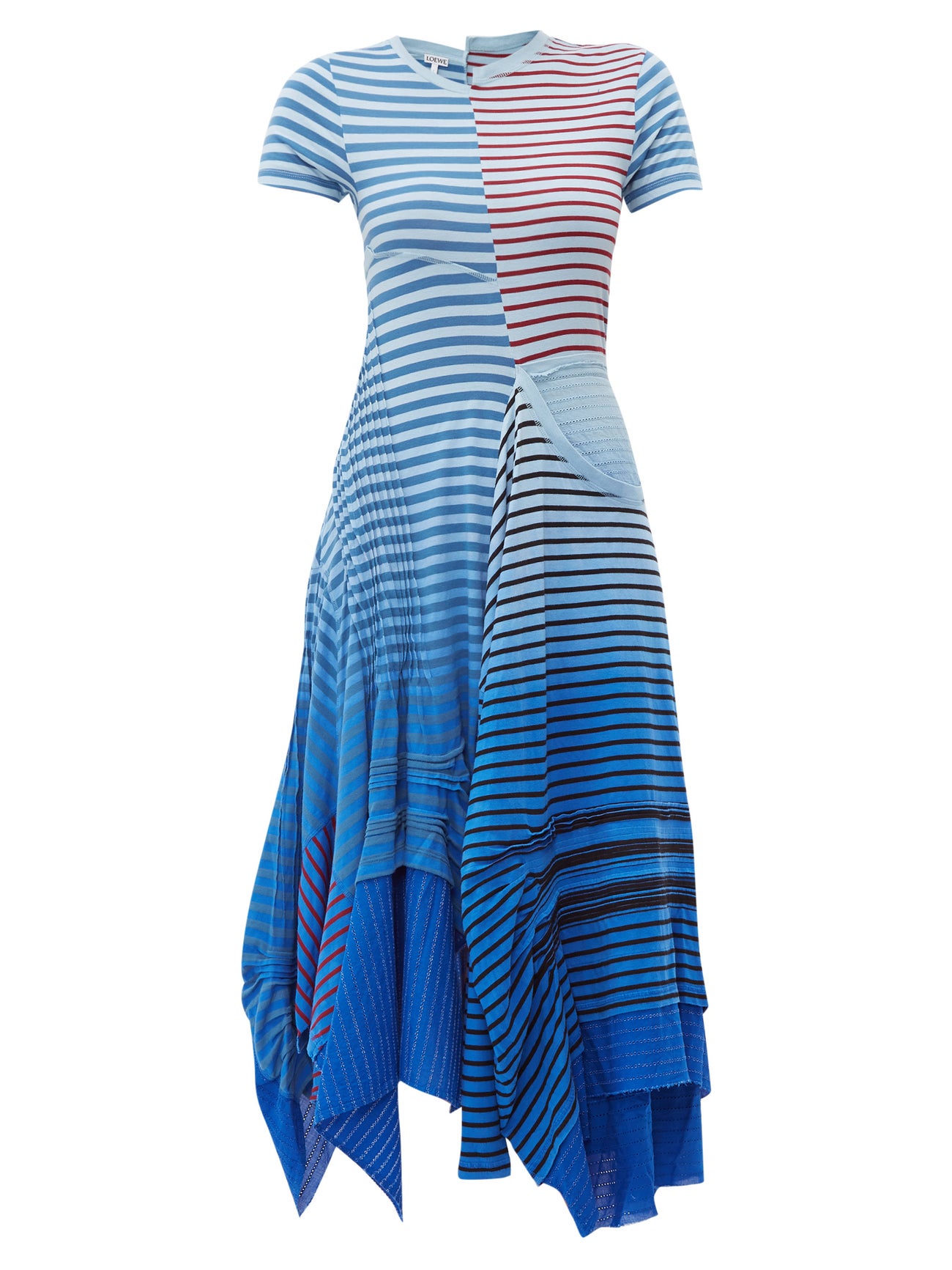LOEWE Asymmetric Tie-Dye Stripe Cotton-Blend Dress in Blue | Endource loewe tie dye dress