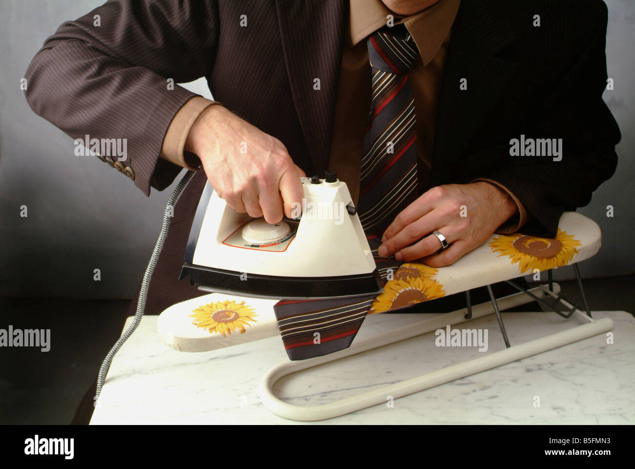 A man ironing his tie Stock Photo - Alamy ironing silk tie