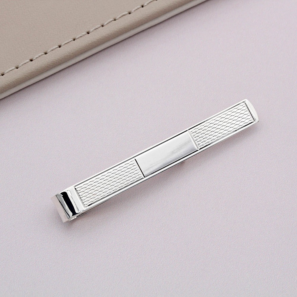Engravable Sterling Silver Tie Slide with Diagonal Design | The Lanam Shop sterling silver tie slide