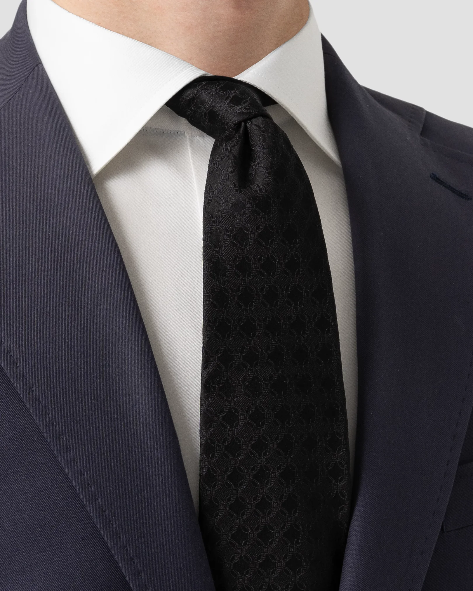 Black Geometric Print Silk Tie - Eton eton knot tie