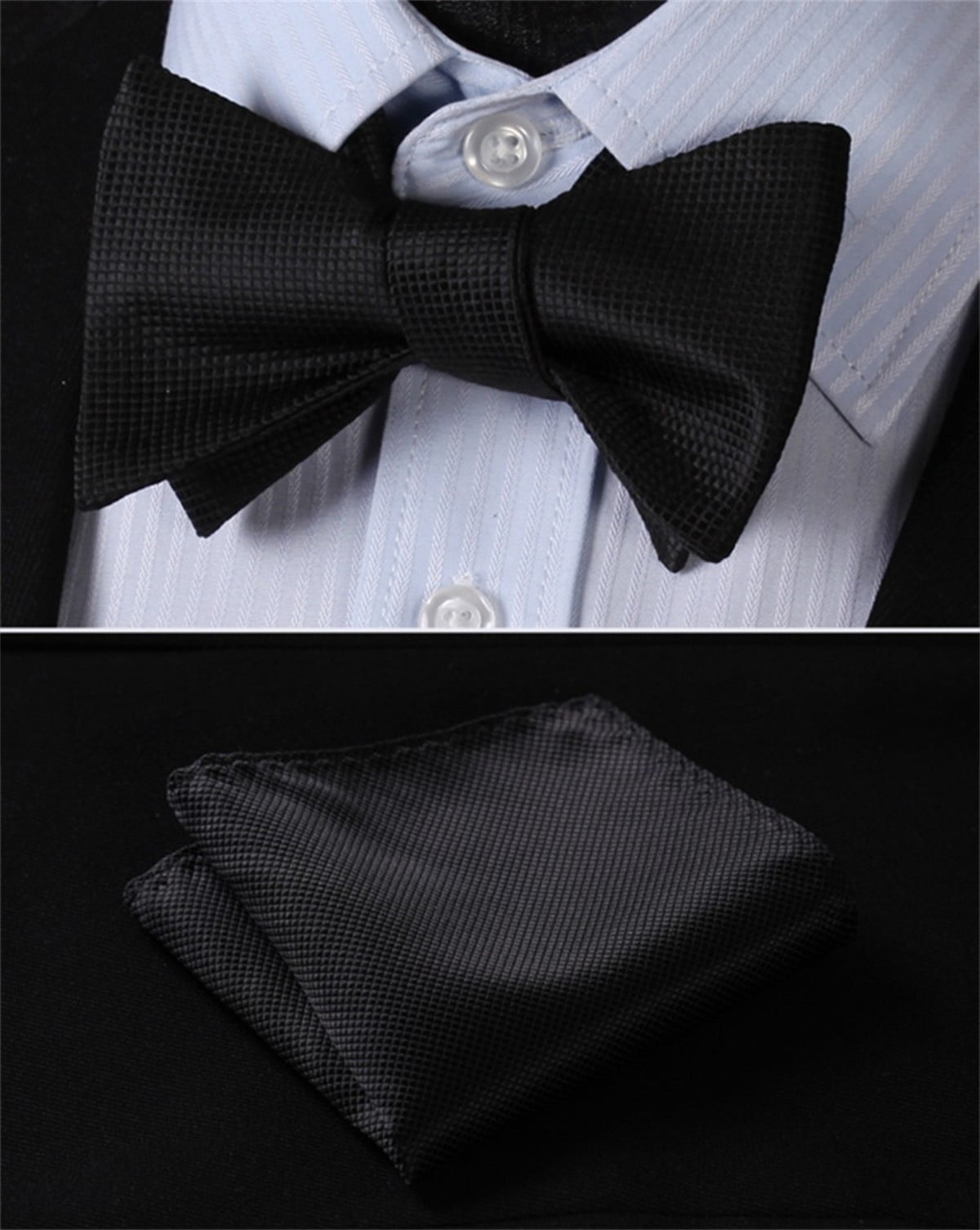 HISDERN Bow Ties for Men Solid Color Self Tie Bow Tie Pocket Square Set Classic Formal Satin meijer bow tie