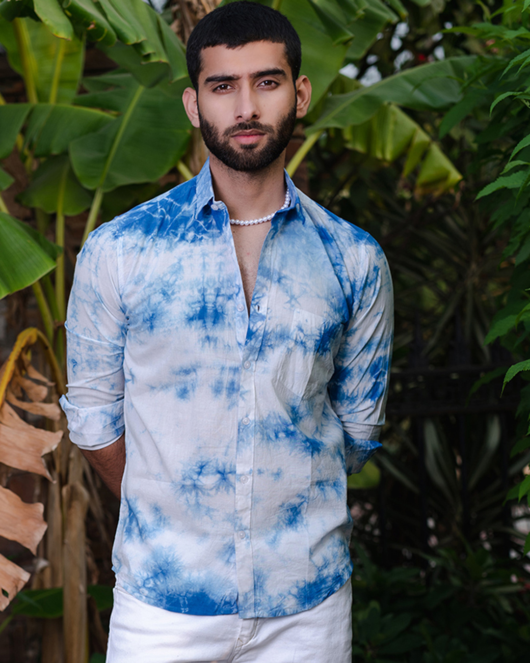 Buy Men's Blue & White Tie & Dye Shirt Online at Bewakoof mens blue tie dye shirt