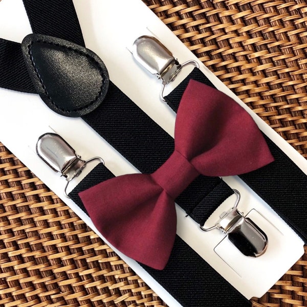 Burgundy Bow Tie & Suspenders, Men's Bow Tie, Boys Bow Tie, Mens Suspenders, Boys Suspenders mens burgundy suspenders and bow tie