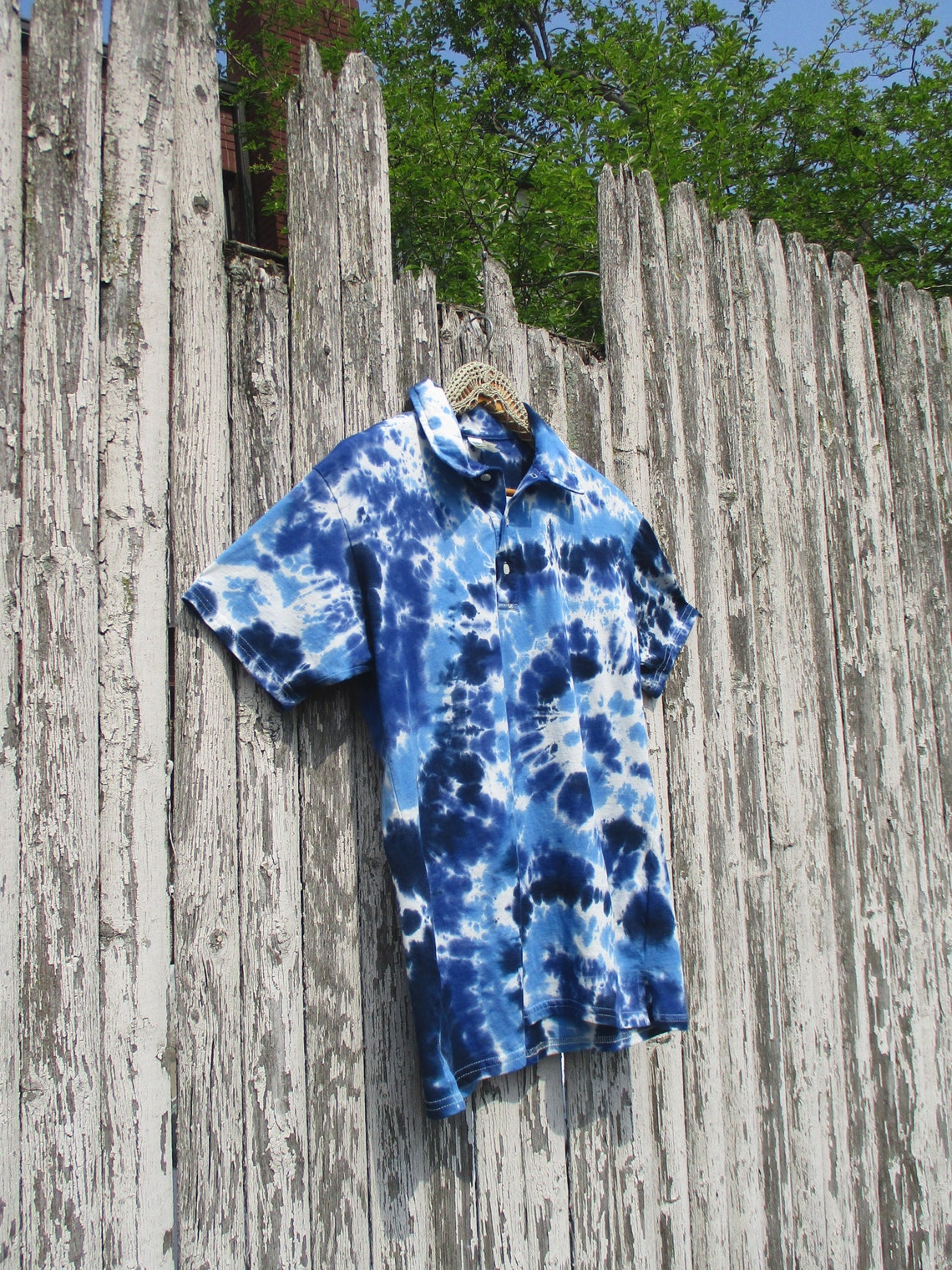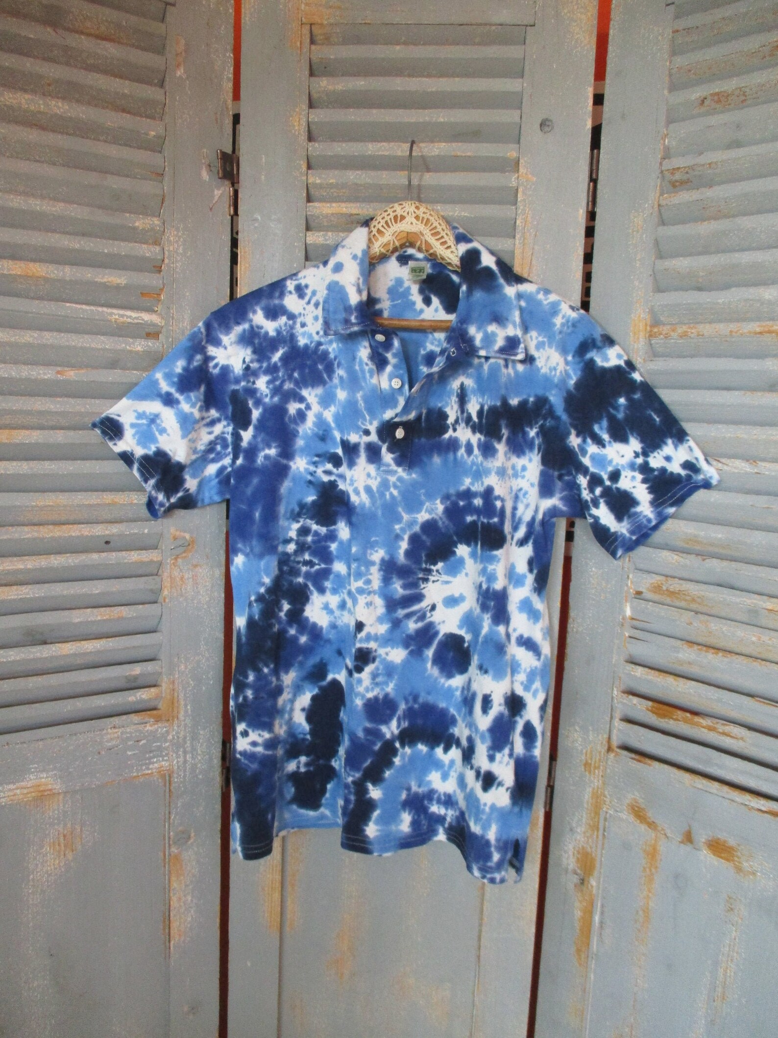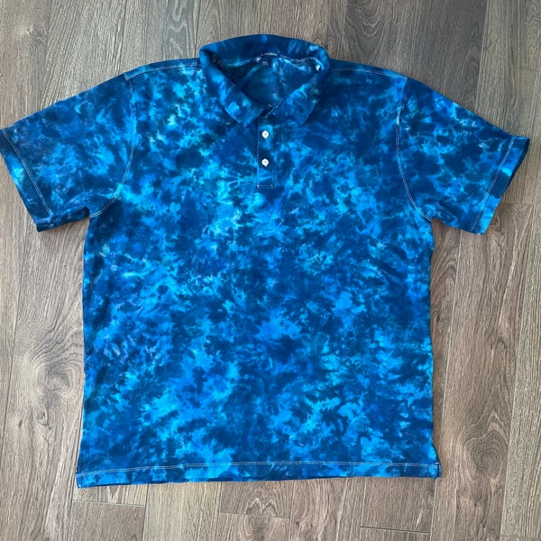 Blue Tie Dye Polo Shirt Groovy Golf Shirt | Etsy mens tie dye golf shirt